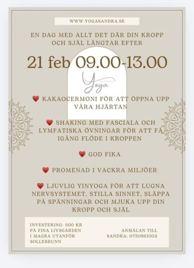 Läs mer om mina kurser och retreats. Jag erbjuder flera yogaformer.